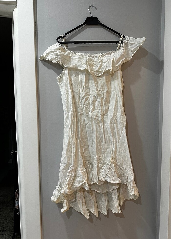 Askılı kayık omuz detaylı fırfırlı yazlık elbise