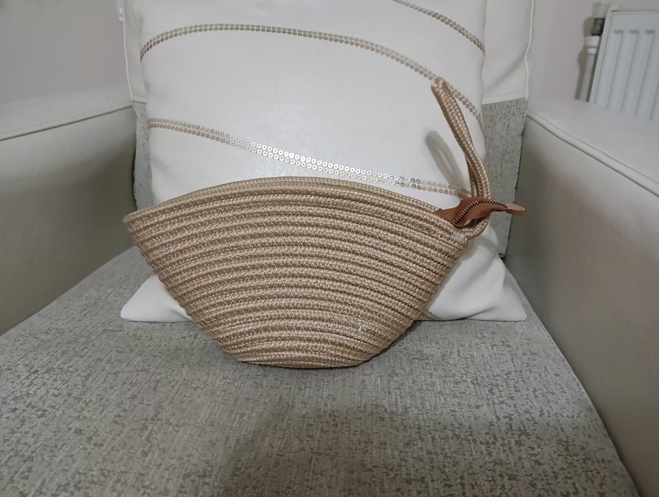 Bej renkli, yazlık hasır çanta, hiç kullanılmadı.