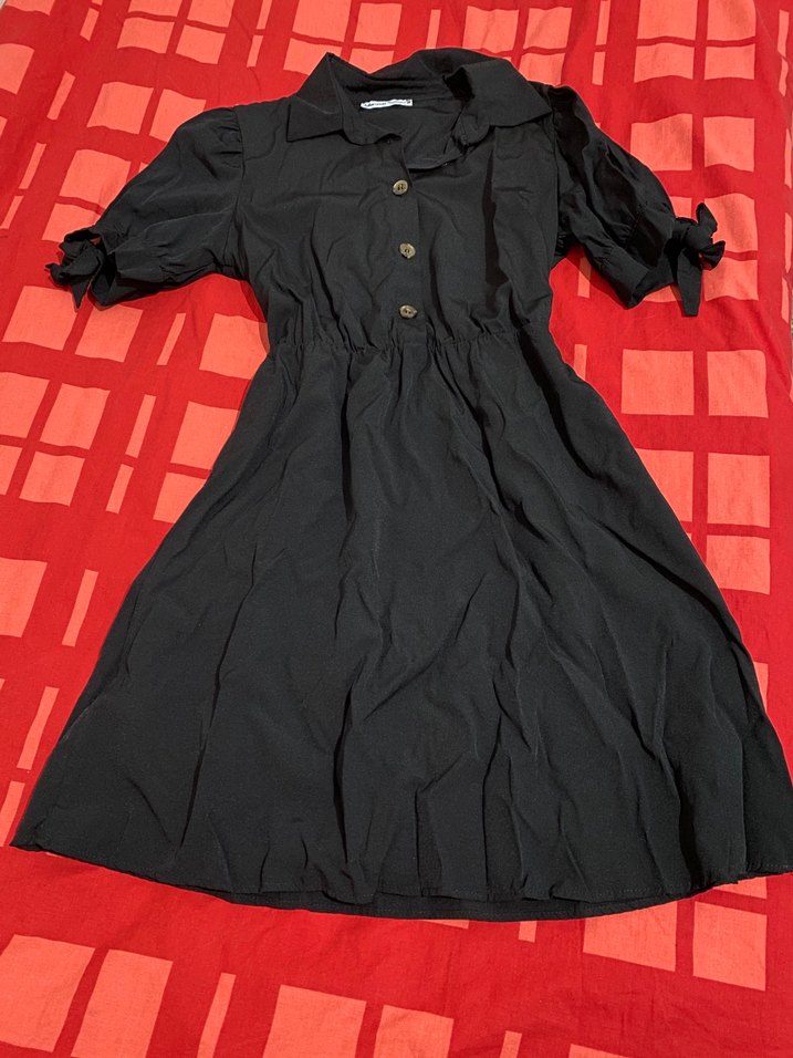 Sentetik kumaştan, düğmeli detaylı. Günlük kullanıma uygun şık bir parça. M beden uyumludur, çok az giyildi. Kemer yeri de vardır ama kemeri yoktur. Yazlık cok tatlı bir elbise.