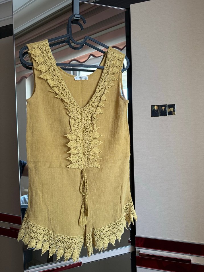 Üründe hiçbir sıkıntı yok. Hardal tonlarında kullanışlı ve hoş bir ürün. Bedeni xs olmasına rağmen 53-59 kg arasına son derece uygun.