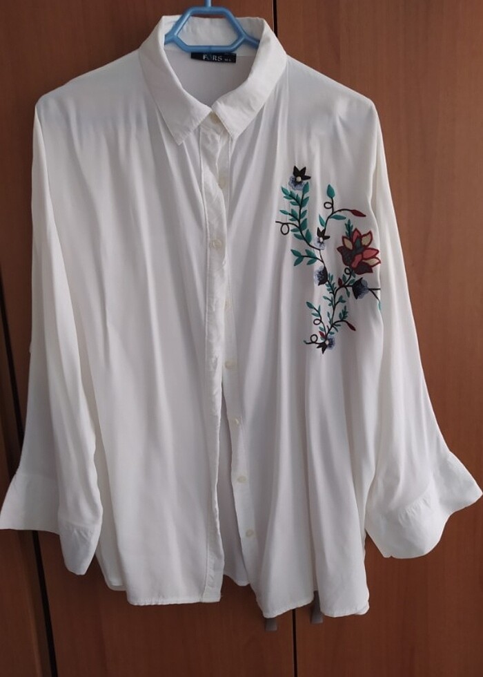 yazlık nakış desenli beyaz gömlek. 2 kere giyilmiştir hiçbir defosu yoktur. rahat kesim 38 ve 42 bedenler arası uygundur.