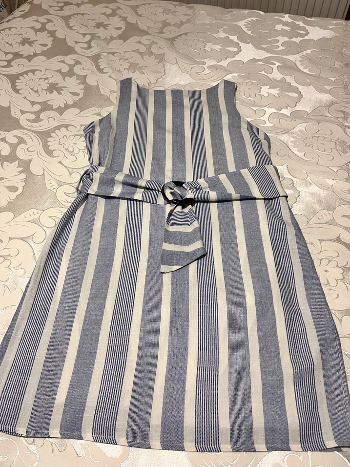 Yumuşak dokulu pamuk kumaşı var, altı astarlı, sırtı gizli fermuarlı. İster kemerli ister kemersiz, yazın kurtarıcı olucak. Zayıflayınca giyerim koleksiyonumdan, bir kere bile kullanılmadı ama 1 kez yıkadım aldığımda .kusursuzdur. İki kol arası 48 cm, boyu 92 cm
