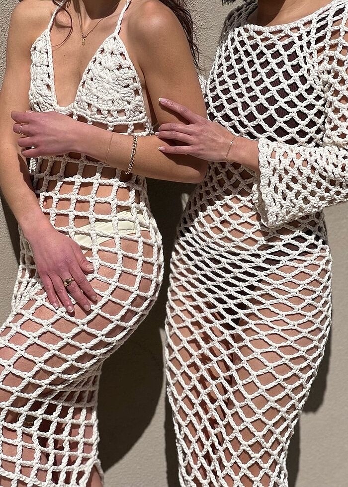 Yazlık örme file delikli pareo elbise