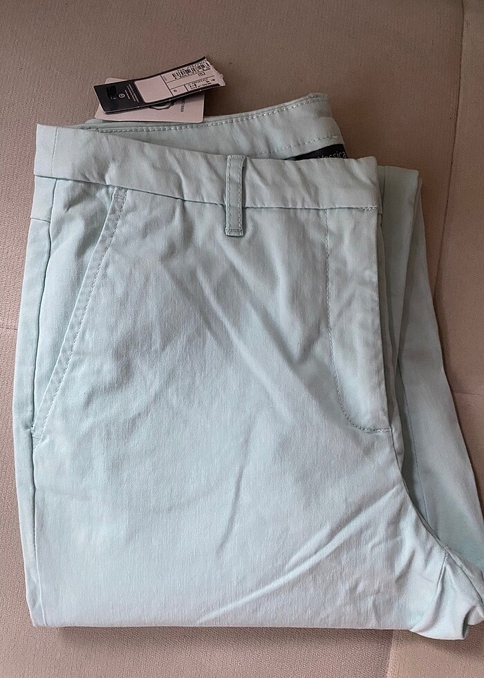 C&A dan alınmış, etiketi üzerinde su yeşili pantolon.