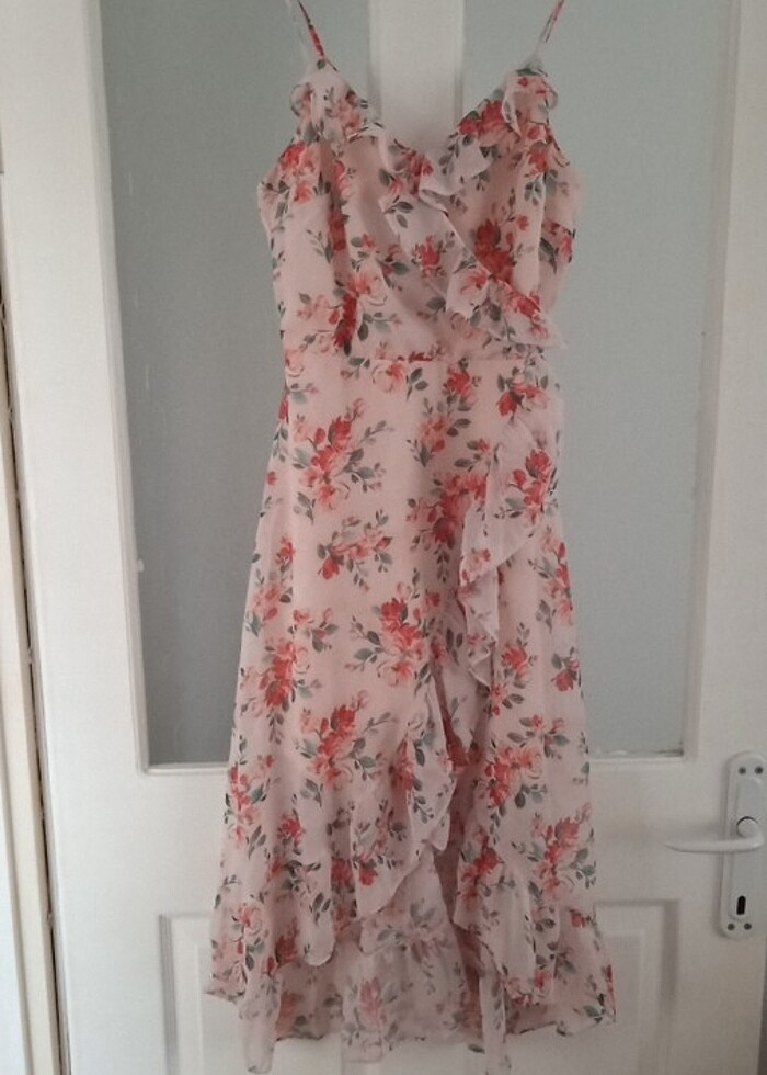 Bir kere kısa süreli özel gün için giyildi Hiç bir kusuru yoktur Şifon astarlı askılı elbise