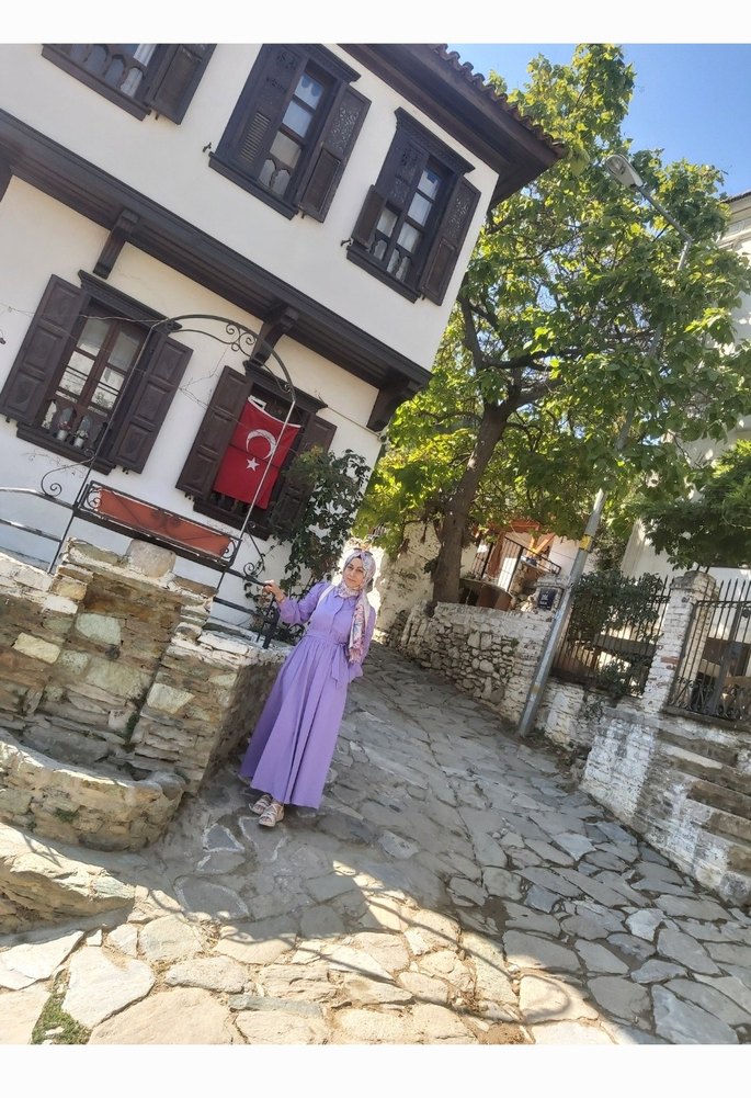 Pastel mor renkte, kollarında etnik deseni var. 36 beden tam kalıp , yazlık ince kumaş. Geçen sene almıştım toplasam 5 kere giydim ,bu sene dar olduğu için giyemiyorum.Hiç bi kusuru yok sıfırdan farksız.
