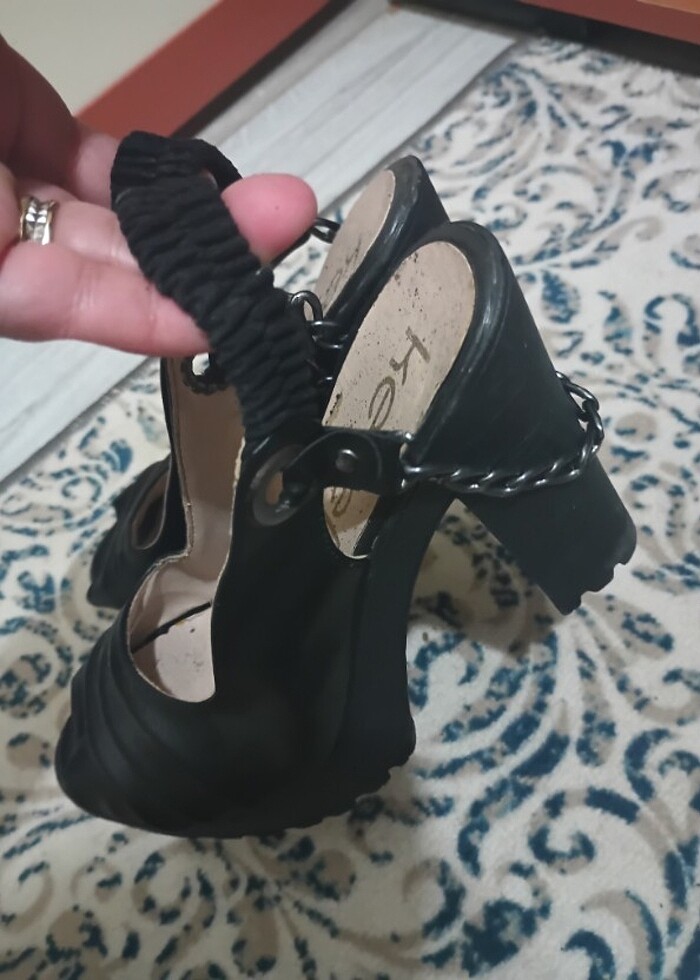Sadece bir defa giyildi temiz yeni gibi hiçbir sorunu yok arka tarafı zincir detaylı arkası lastikli 36 numara 10 cm topuk boyu son fiyattır iade yoktur