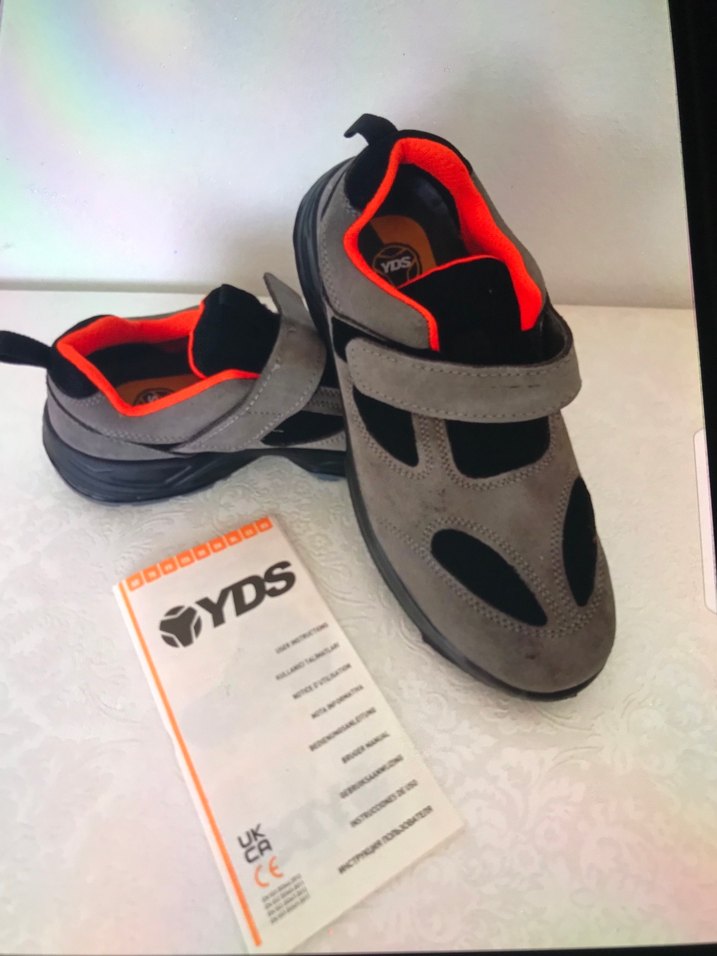 Gri renkli, Velcro kayışlı erkek spor sandalet. Kauçuk malzemeden üretilmiş, baskılı detaylara sahip. Sokak stili ve athleisure için uygun. Marka: YYDS.