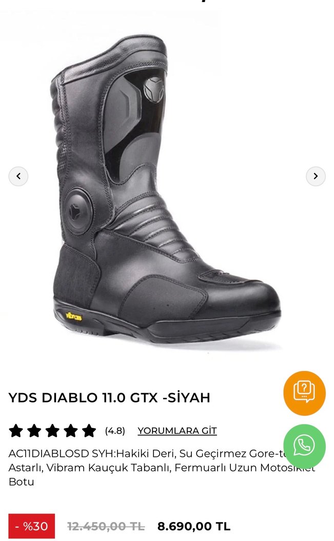 Hakiki deri, su geçirmez Gore-Tex astar, Vibram kauçuk taban ve fermuarlı uzun tasarıma sahip siyah motosiklet botu. 43 numaradır. Hiçbir deformesi yoktur.