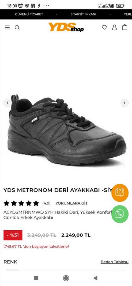 Muadilin fiyatı ortadadır. Günlük ve Outdoor kullanım için uygundur.Gar dolabta tükkanimda daha uyguna bulabilirsiniz- Nefes alabilir Hakiki Deri ve Tekstil kullanılmıştır. - Taban kısmı çift yoğunluklu poliüretan malzemeden üretilmiştir. - Şok absorbsiyonu ve yumuşaklığı sayesinde kullanıcıya en uygun konforu sağlar. - Mühendislik ürünü taban tasarımı sayesinde kullanıcıya üstün hareket kabiliyeti ve denge sağlar. Ağırlık: 800gr (44 no için yaklaşık ağırlık) (Sığır derisinden üretilmiştir) Hakiki deri ve bağcıklı, siyah erkek outdoor ayakkabısı. Spor ve sokak stili için yüksek konfor sunar. ♂️