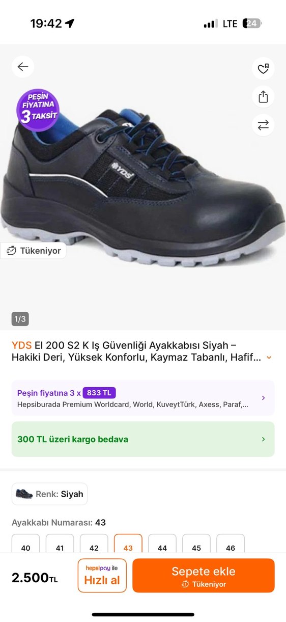YDS siyah iş güvenliği ayakkabısı hakiki deri, yüksek konfor, kaymaz taban ve hafif yapıya sahip, bağcıklı modeldir. Spor ve sokak stiline uygundur.
