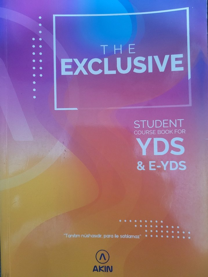 Akın yayınevinin The Exclusive kurs kitabı, YDS ve E-YDS sınavlarına hazırlanan öğrenciler için hazırlandı.