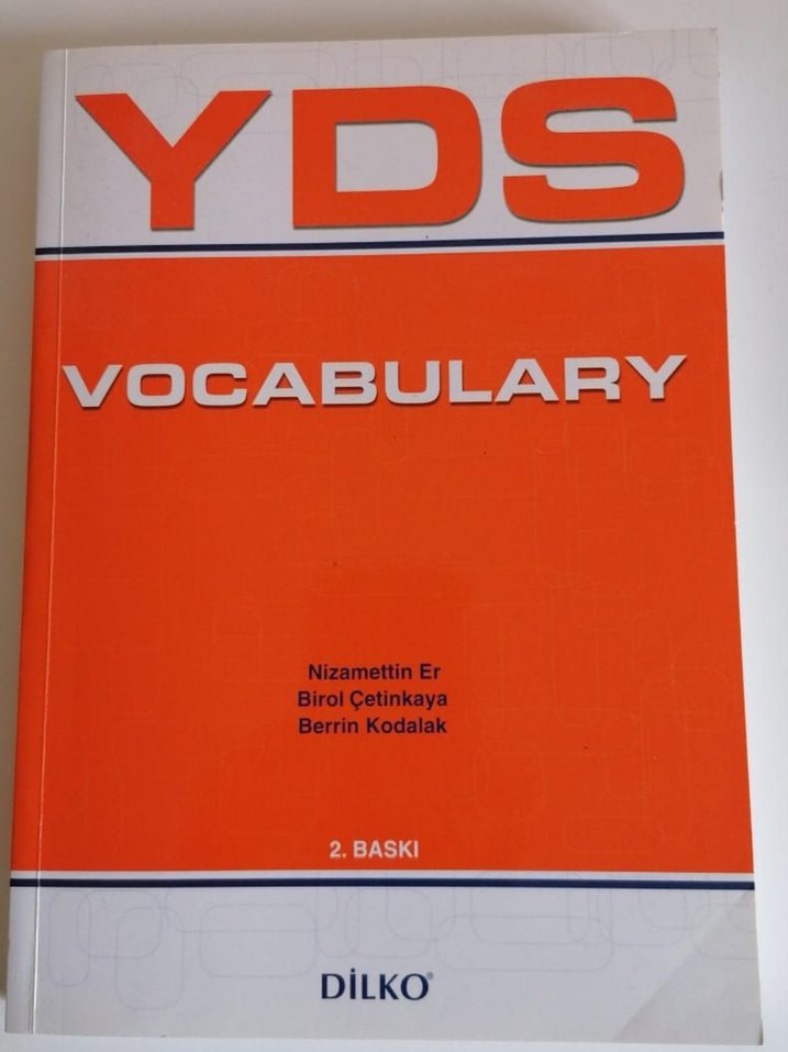 Nizamettin Er, Birol Çetinkaya ve Berrin Kodalak tarafından hazırlanmış YDS Vocabulary kitabı, Dilko yayınevi, 2. baskı.