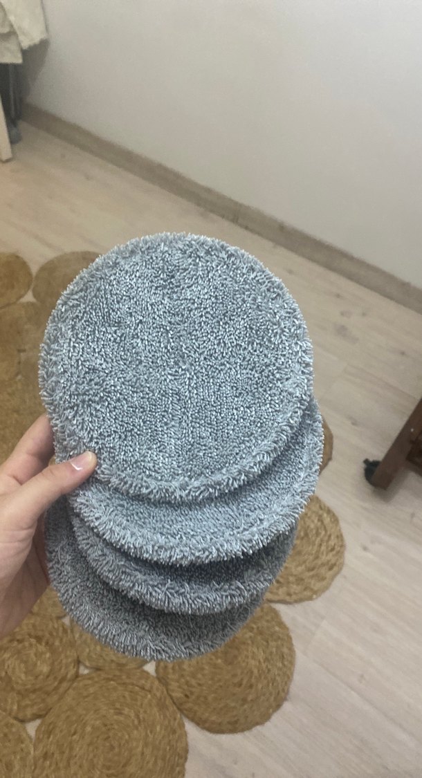 Yumuşak dokulu, gri renkte mop süngerleri seti. Nazik temizlik için uygundur.