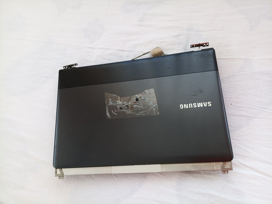 Samsung siyah laptop ekran paneli, arka kısmında bağlantı noktaları ve bant mevcut. Tamir için uygundur. ekran kırık kasa klavyesi sağlam
