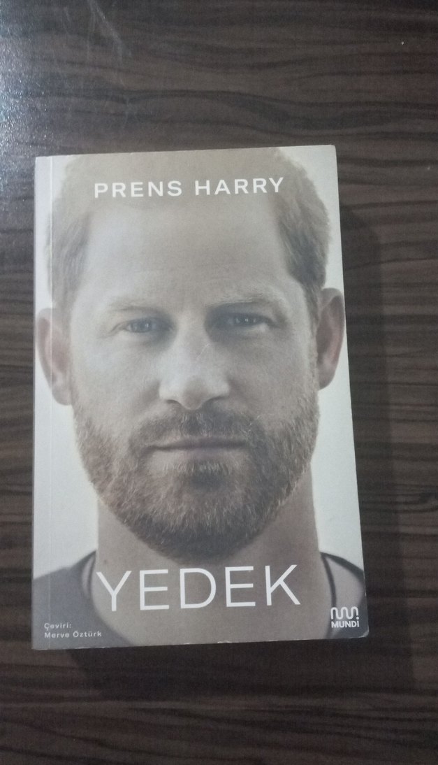 Prens Harry tarafından yazılan ve Merve Öztürk'ün çevirdiği "Yedek" adlı biyografi kitabı. Kapakta Prens Harry'nin yakın çekim portresi yer alıyor.