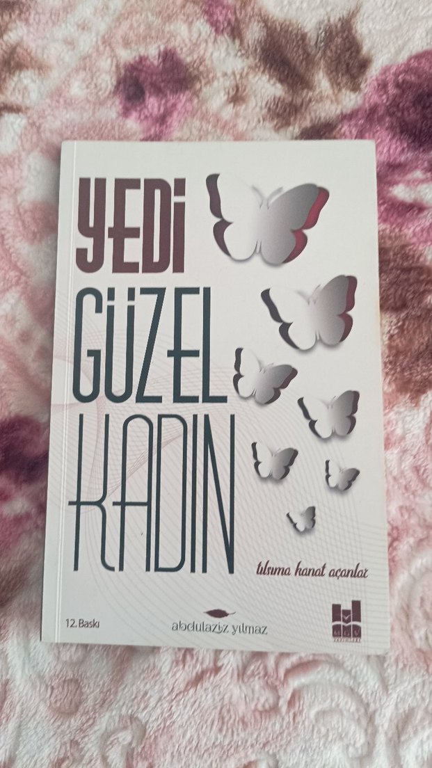 Tılsıma Hanat Açanlar'ın "Yedi Güzel Kadın" adlı romanı, 12. baskıdır. Beyaz kapakta kelebek desenleri yer alır.
