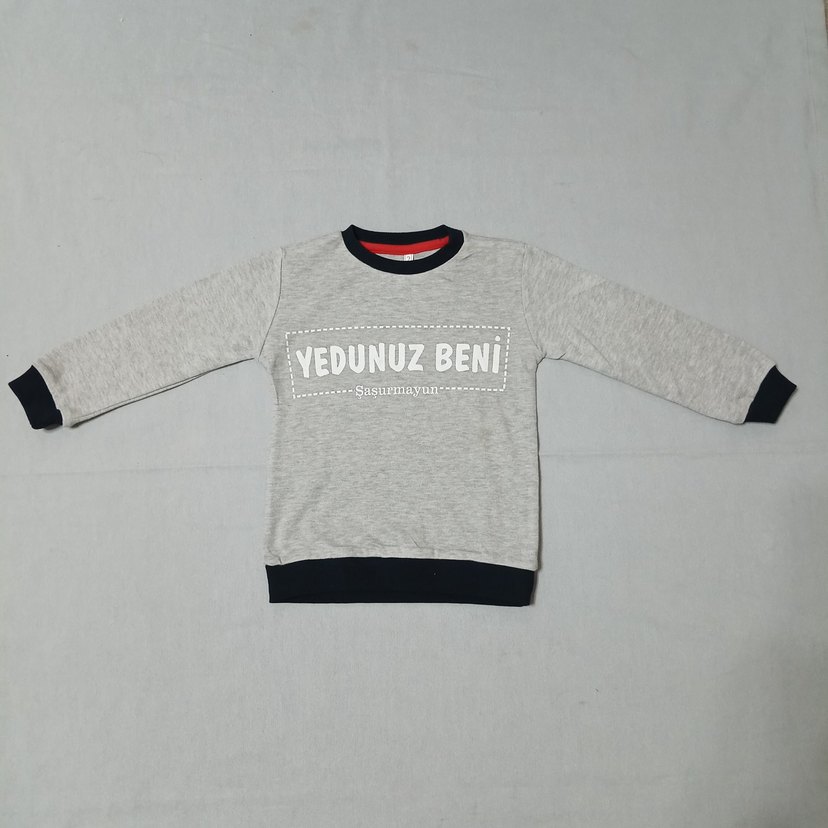 Yedunuz Beni Gri Pamuklu Erkek Sweatshirt Velcro Detaylı Gri pamuklu, uzun kollu ve bisiklet yaka erkek sweatshirt. Önünde baskı ve velcro detayı bulunur. Rahat, bol kesim sokak stili. Eni 28 Boyu 38