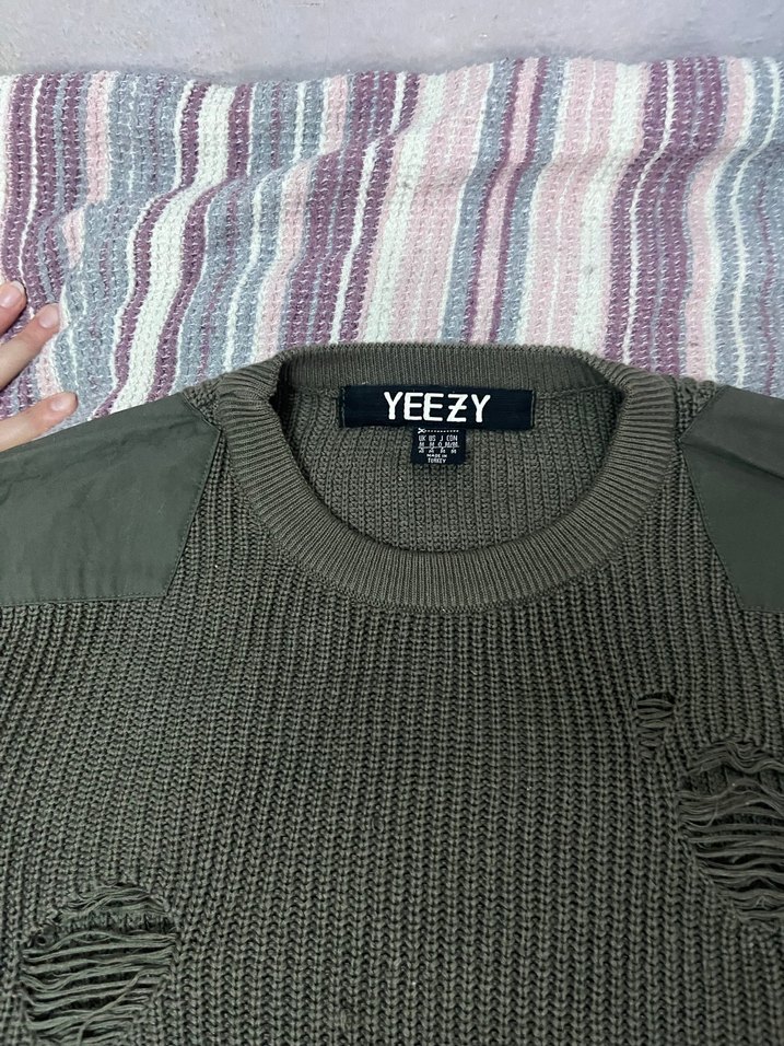 YEEZY marka, uzun kollu, bisiklet yaka ve örgü yapıda, gri renkte kadın triko kazak. Rahat ve şık dış mekan kullanımı için uygundur.