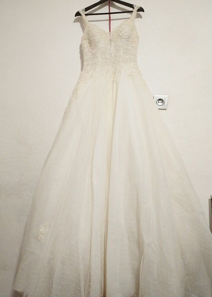 Gelinlik A kesim beyaz yeni model tarlatanı var kabarık