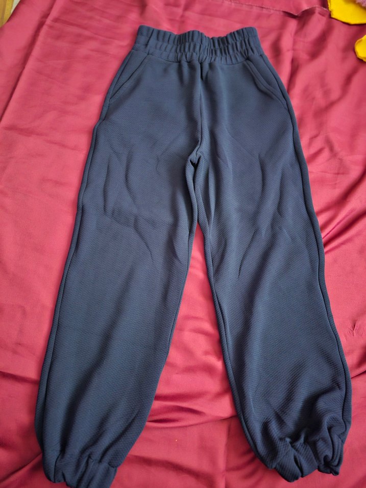 Yeni, hic kullanılmamış, XS beden, lacivert renkli, Yumuşak sentetik kumaştan, elastik bel ve manşetlere sahip gri rahat kesim eşofman. Spor ve gündelik kullanım için uygundur. ♀️