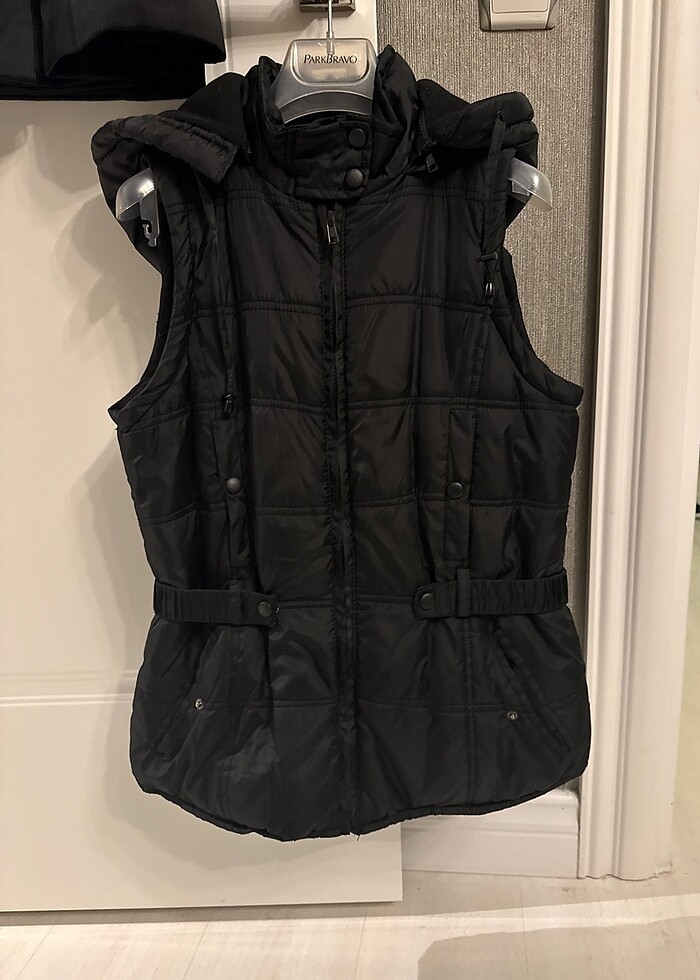 İçi polarlı kapşonlu kemerli şık spor tarz yelek