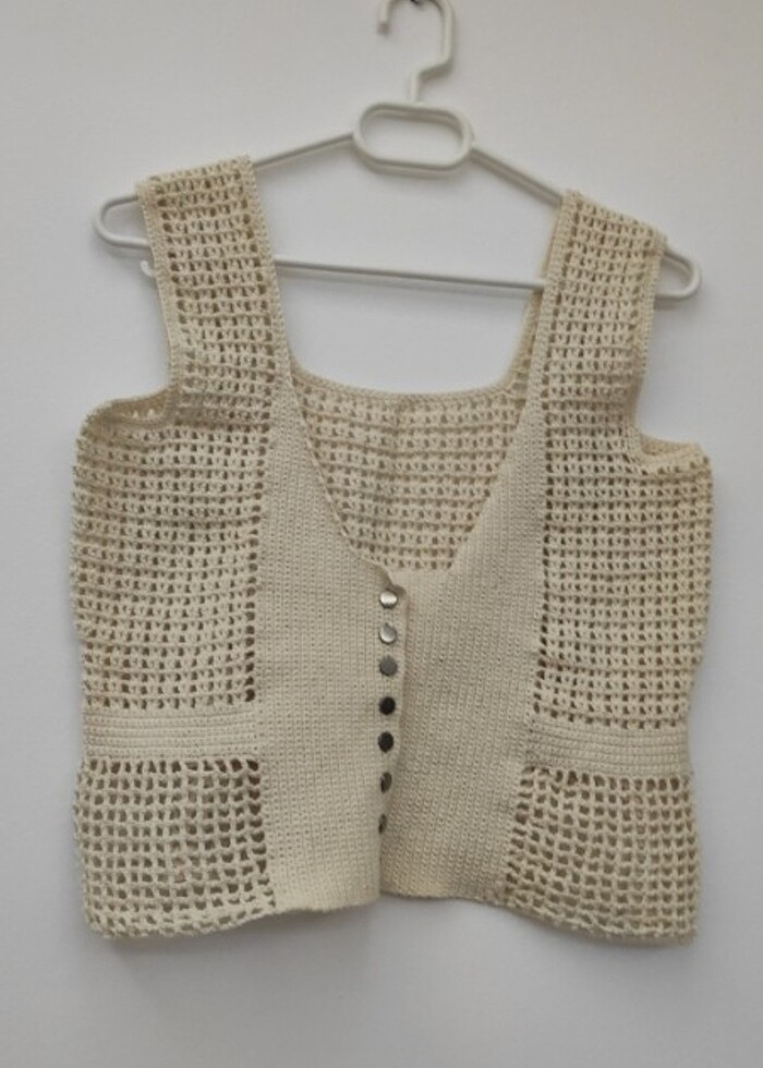 Pamuk ipliğinden tığ işi örgü yelek.S beden