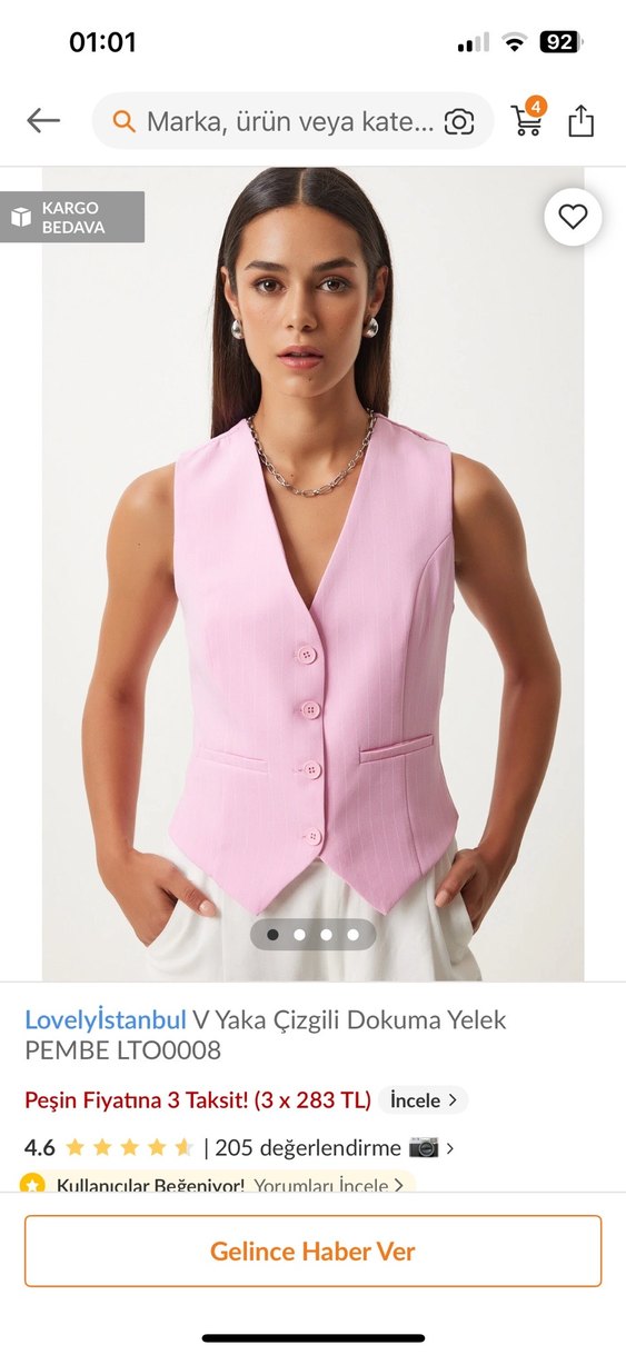 Pembe renkli, V yakalı ve düğmeli ön kısmı olan kolsuz yelek. Hiç kullanılmadı. Güncel mağaza fiyatı 680 tldir