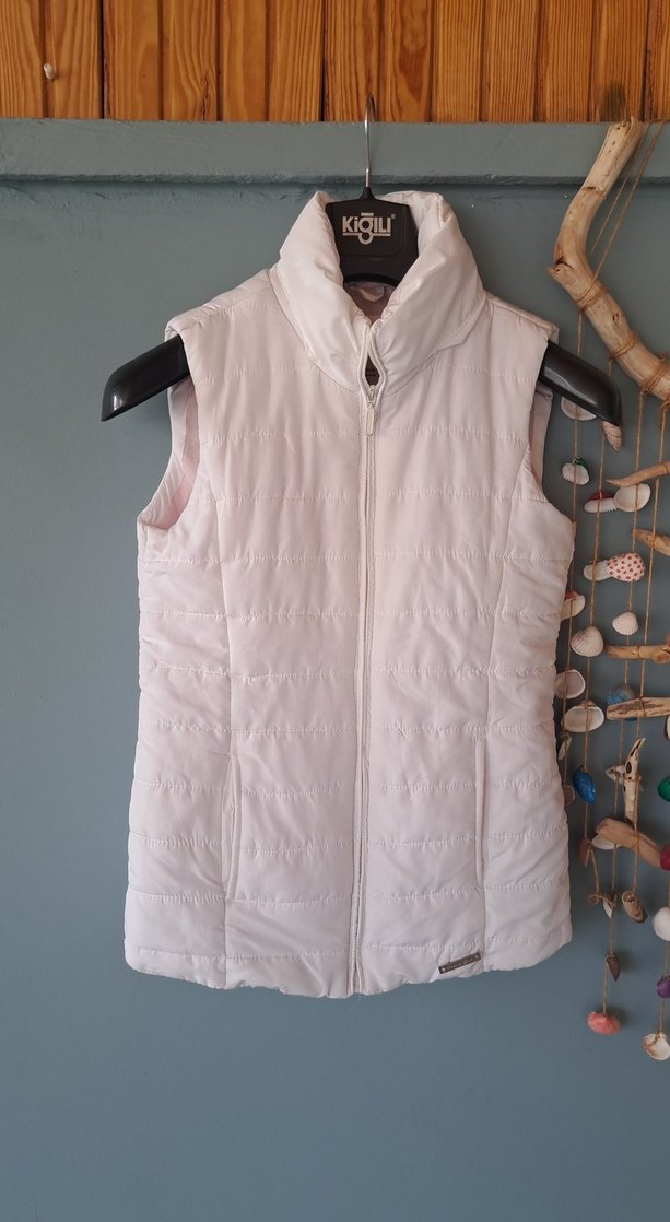 Beyaz renkte, fermuarlı 14-15 yas. şapkası arka kısma toplanıyor. sorunu yok.