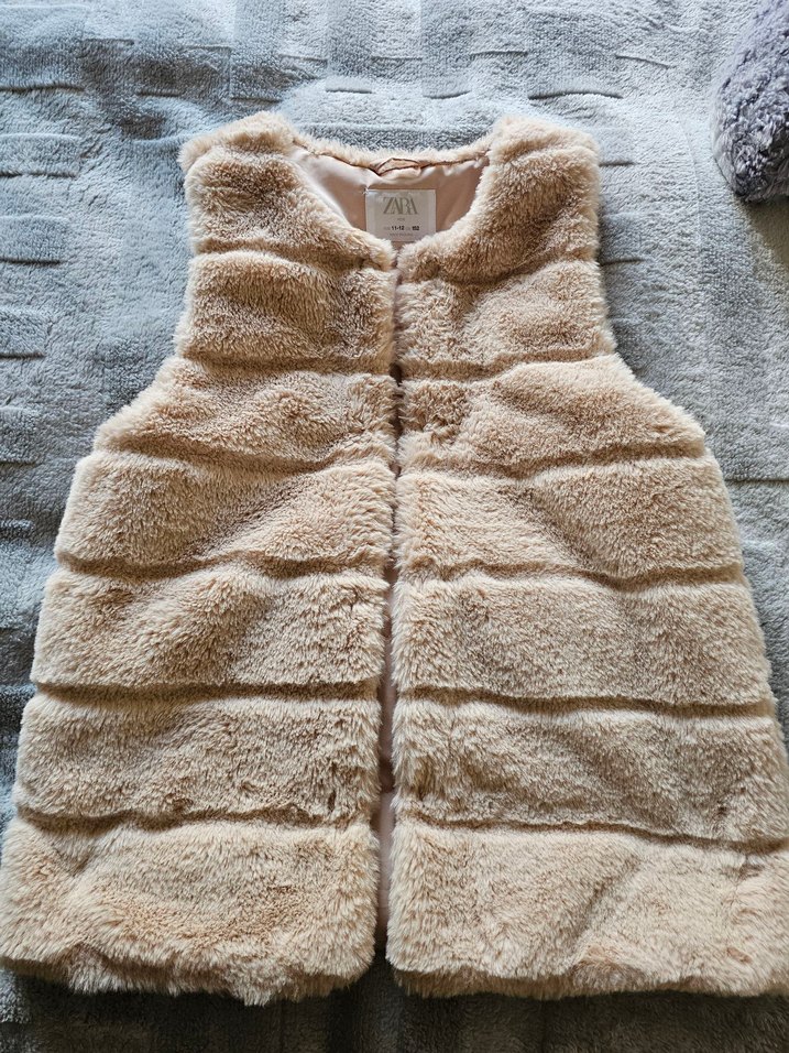 Kız çocukları için bej renkli, yumuşak peluş yelek