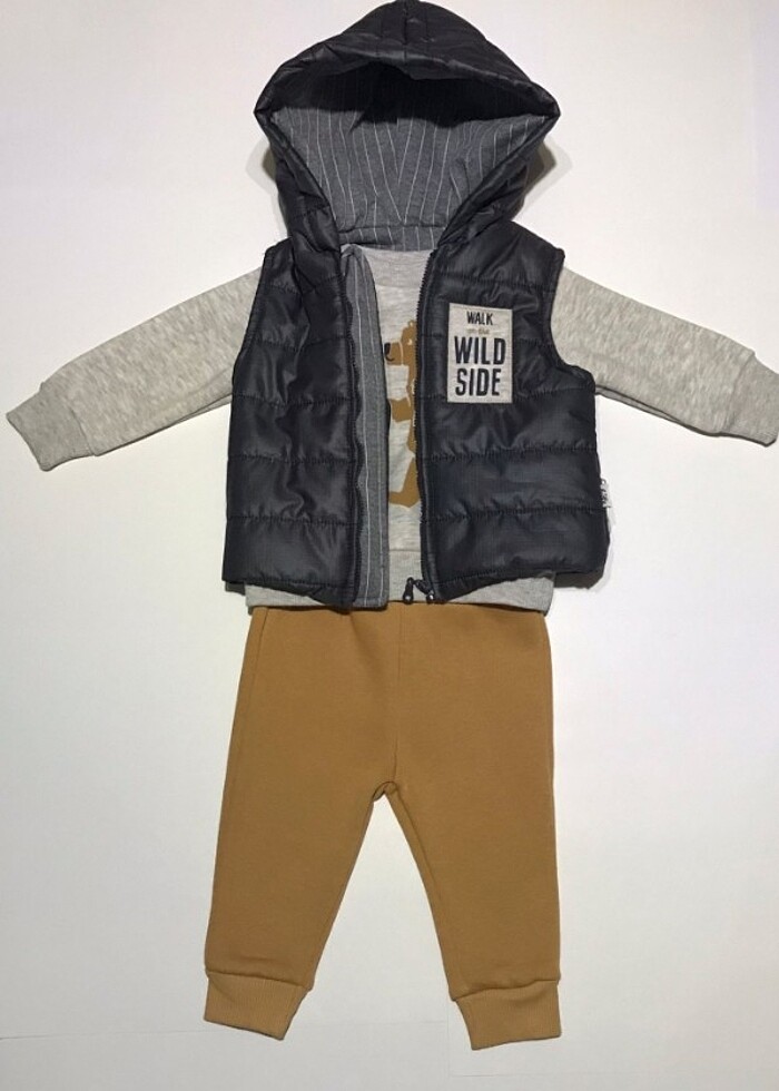 3 iplik içi polarlı eşofman takımı ve yelek 3 lü takım 12-18 ay 9-12 ay