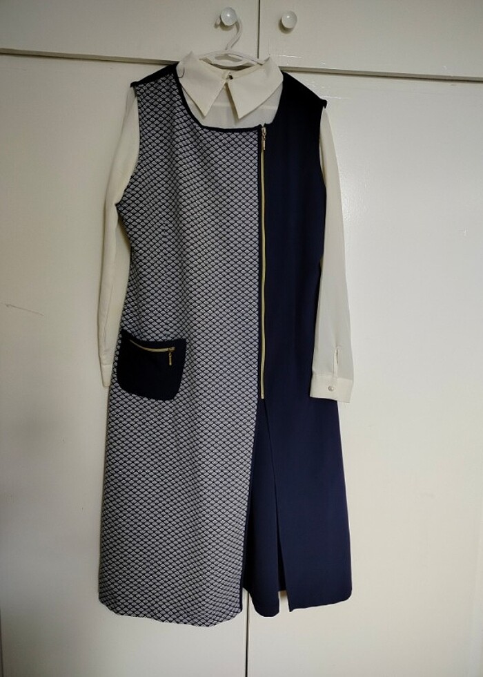 İki parçadan oluşuyor. Gömlek yelek gibi uzun değil bel hizasında bitiyor. Bir iki kez giyildi. Çok iyi durumda