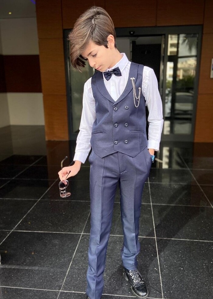 5 parça. pantolon, yelek, gömlek, papyon ve zincir. #takımelbise #zincir #etek #pantolon #elbise #etek #ikilitakım #gömlek #dolapindirim #ayakkabı #sünnetlik