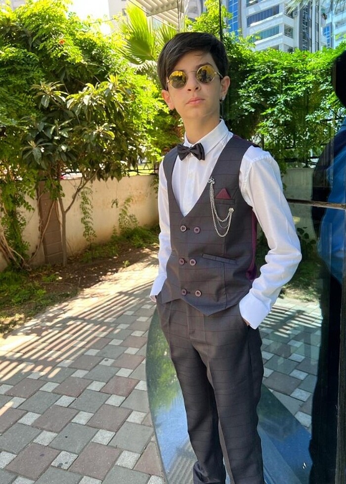 5 parça pantolon yelek gömlek papyon ve yaka zincirinden oluşmaktadır sıfır etiketli ürün