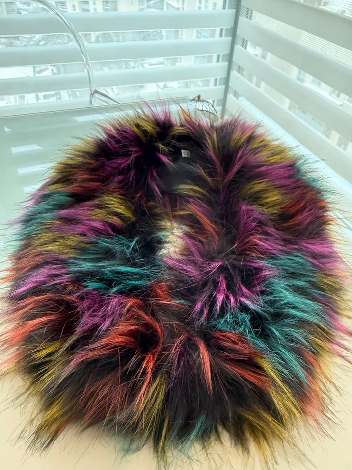 Yelss marka karışık renkli faux fur (suni) yaka. Yumuşak dokulu ve oldukça şık bir duruşu var; kaban ve montlara anında hareket katıyor. Yalnızca 1 kez takıldı, temiz ve çok iyi durumda. İç astarı %100 polyester. 30 derecede yıkanabilir, ayrıca kuru temizleme de yapılabilir. Günlük kullanıma da, daha iddialı kombinlere de rahatlıkla uyum sağlar.