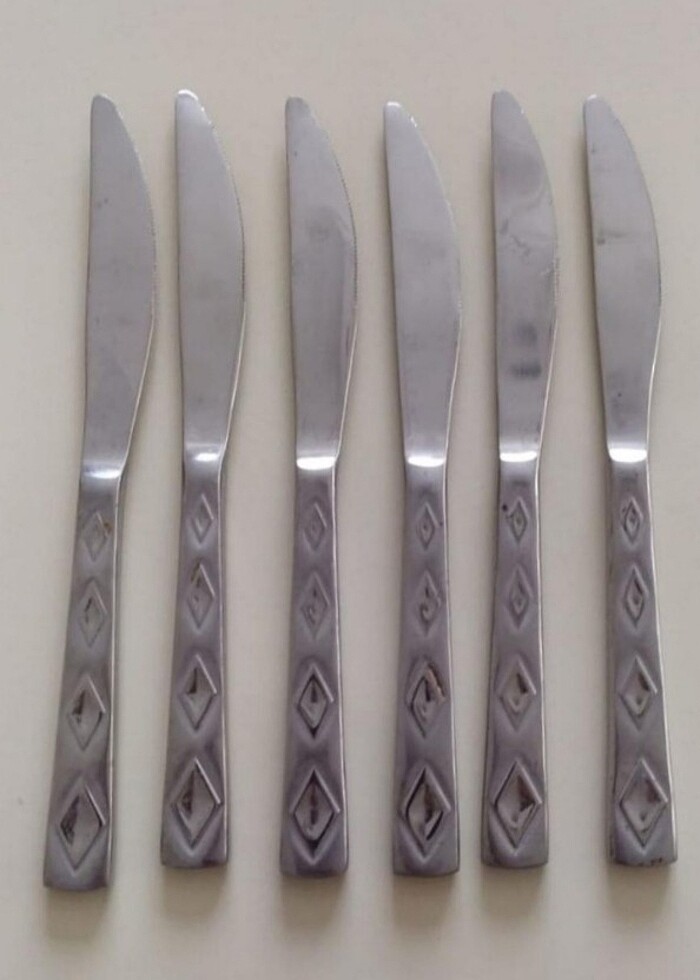 6 adet bir süre kullanılmış, temiz yemek bıçağı..