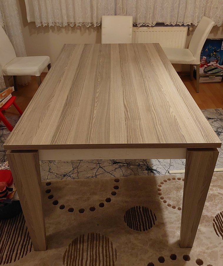 İder marka cappucino renk, 6 kişilik büyük, ağır bir masadır. Kusursuzdur. 6 adet sandalyesi bulunuyor, istenirse uygun rakama onlar da verilebilir. Fiyat uygun tutuldu ihtiyaç fazlasıdır.