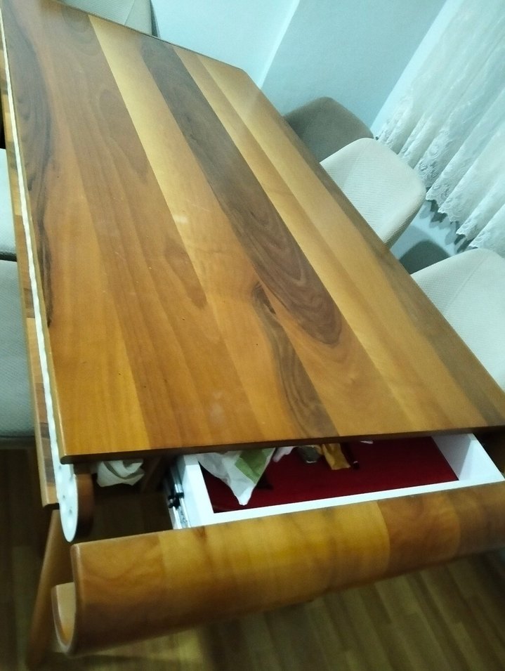 yemek masası 6kişilik 6 sandalye 4 adet krem rengi 2 adet kahve rengi masa çekmeceli