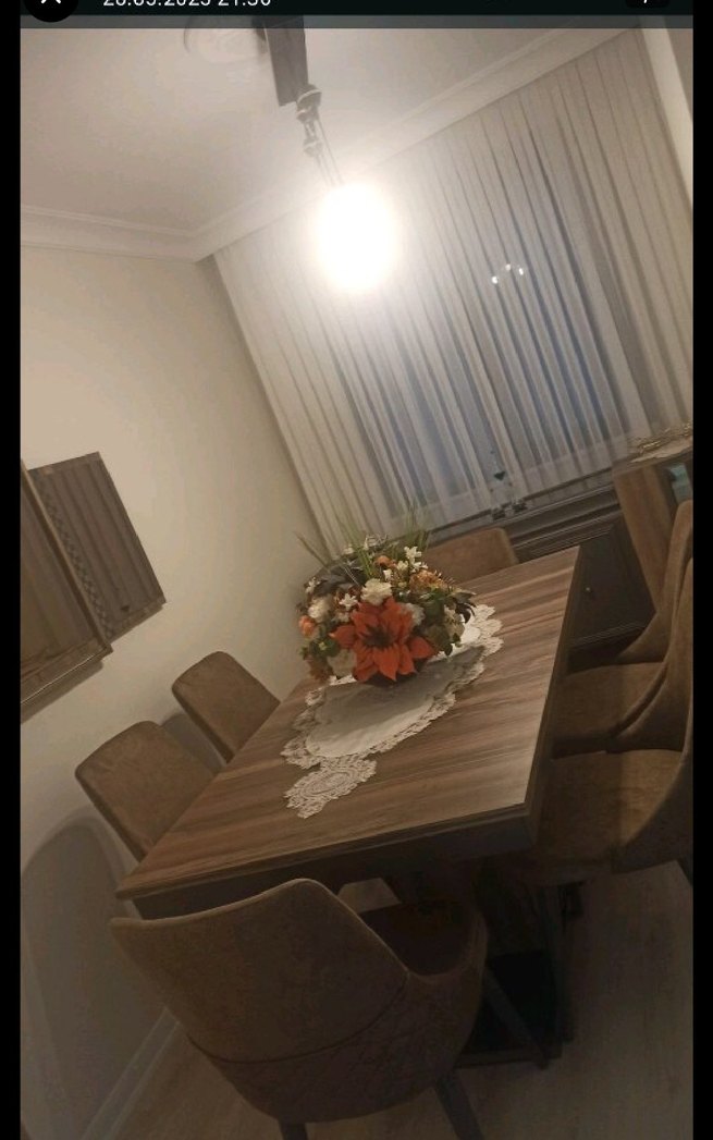 6 sandalye yemek masası konsol ve aynası ile takım olarak satılmaktadır. Herhangi bir deformesi yoktur. Pazarlık payı vardır. Oğluma bebek odası yapacağım için satıyorum. Mağazadan 2023 yılında alındı. Yeniden hiçbir farkı yok. Masanın altında çatal kaşık bıçak seti ile masa örtüsü için dolap bulunmaktadır. Resimler günceldir ,#ev #mobilya #yemekodası #yemekmasası