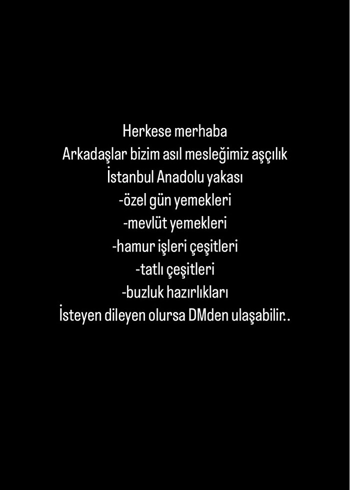 Kişi sayıları sizden, hazırlığınızı yapması bizden, fiyatta anlaşırız.. ihtiyacınız olursa DMden bana ulaşabilirsiniz