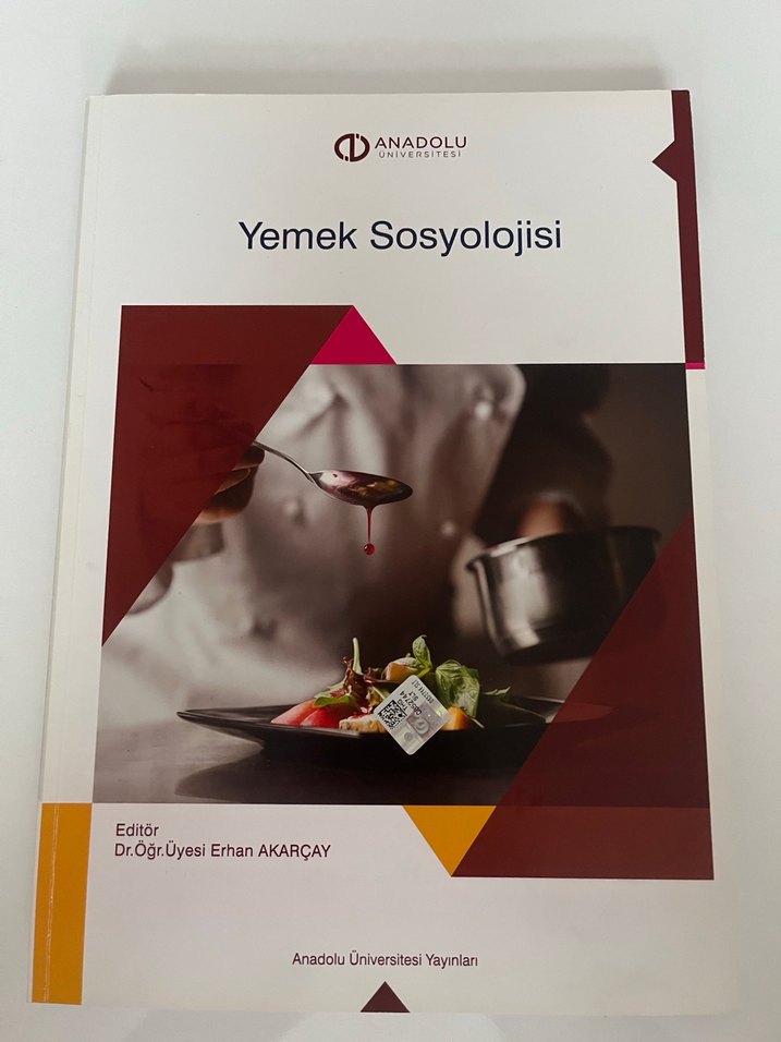 Anadolu Üniversitesi yayınlarından "Yemek Sosyolojisi", yemek ve toplum ilişkisini inceliyor. Editörlüğünü Dr. Erhan Akarçay yapmaktadır. ️