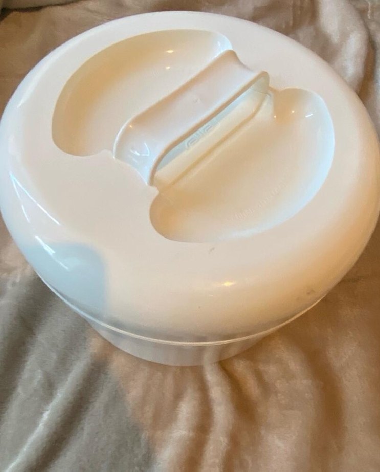 Yemekleri sıcak tutmak için basit kapak tasarımlı açık renkli yemek taşıma kabı.