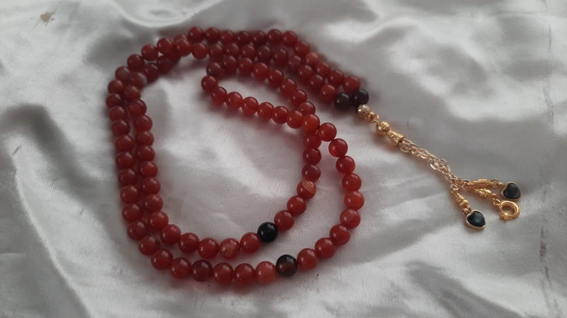 yemen akik doğaltaş Koyu kırmızı renkte, minimalist bohem tarzında tesbih, pürüzsüz yuvarlak boncuklar ve zarif detaylara sahip.