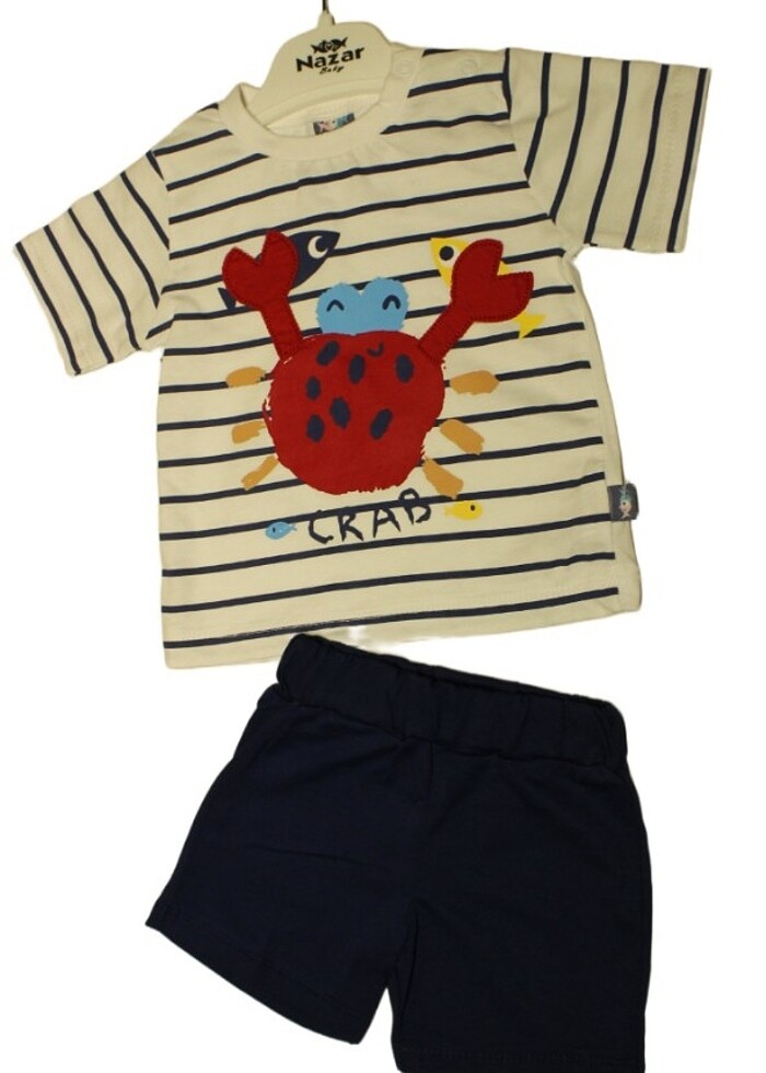 Yengeç baskılı ikili erkek bebek şortlu takım