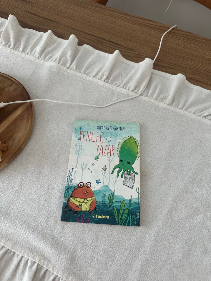 "Yengeço Yazar" çocuklar için renkli denizaltı çizimleri ve eğlenceli karakterler içeren bir hikaye kitabıdır.
