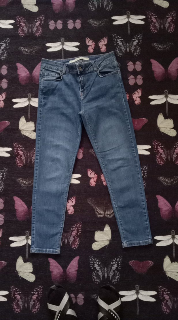 Mavi kot , normal boyda kadın pantolonu. Rahat kesimi ve deseniyle günlük şıklık sağlar. Sayılı giyildi