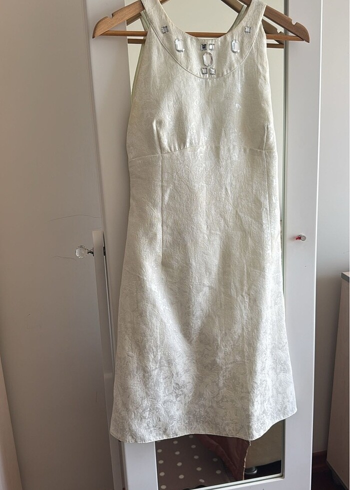 Yeni birkez giyildi çok güzel bir kumaşı var kabartmalı keten yandan fermuar lıaskılardan boyunu ölçtüm 92 santim gövüs 41 santim etegi aşagıdan eni atmış santim astarlı markası vivit