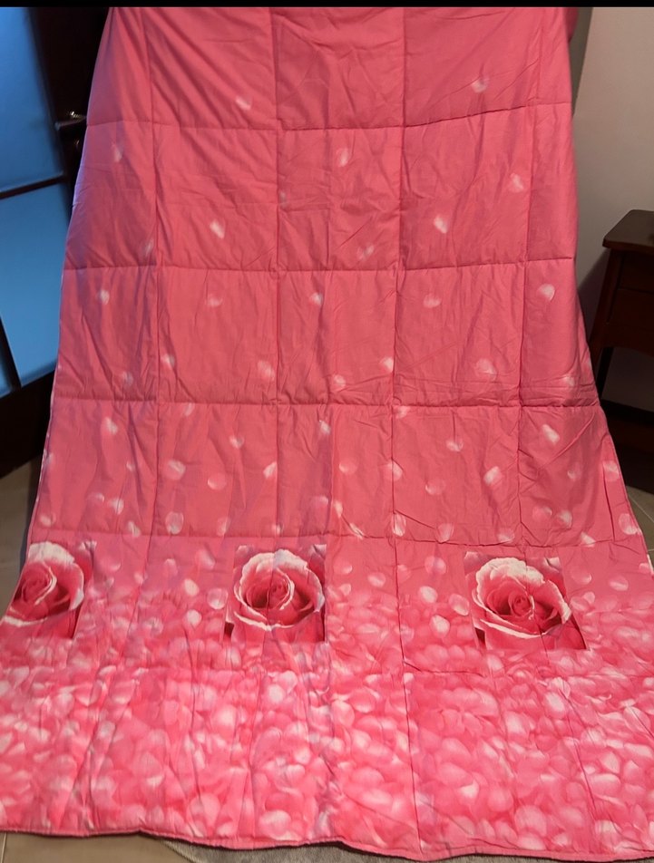 Yeni hiç kullanilmamis (resim için açildi) çift kişilik 2.20 cm -1.65cm pembe gül desenli yorgan