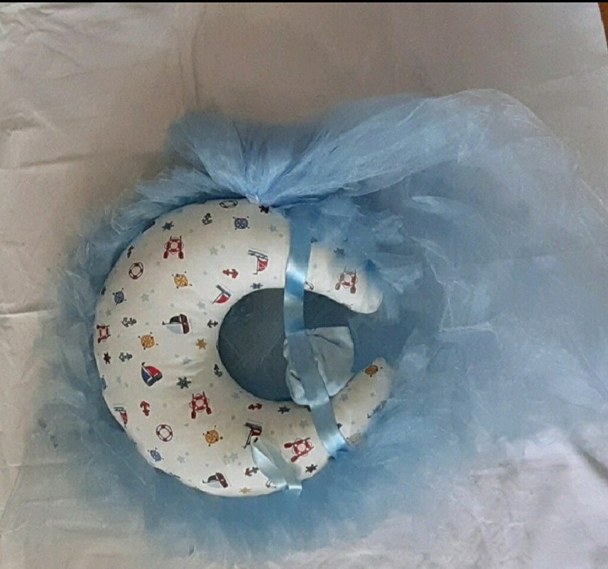 Mavi ay şeklinde yıldız yastığı ve ucunda kuyruğunu oluşturan tülleriyle yeni doğan bebeğinizin kapısını belirleyen süs