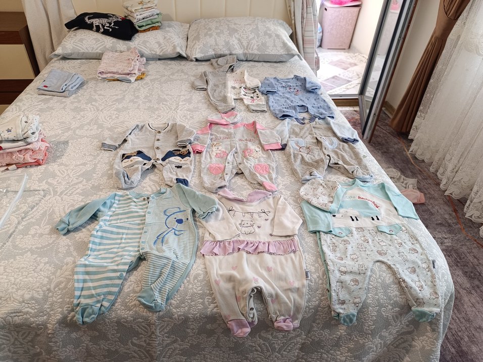 Yumuşak tekstil malzemeden yapılmış, pastel gri renkli, desen içermeyen bebek uyku tulumu seti. Rahat kullanım sağlar. tane fiyatı 150 TL toplu alımda tanesi 100 den verilecektir